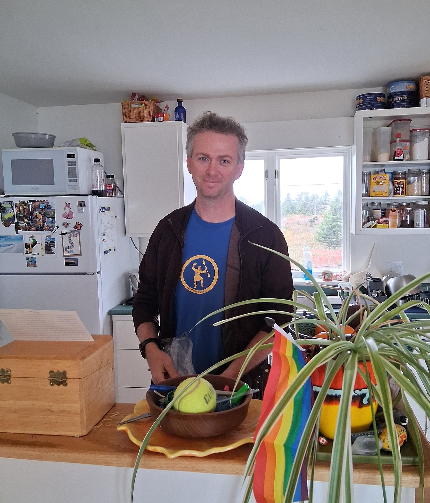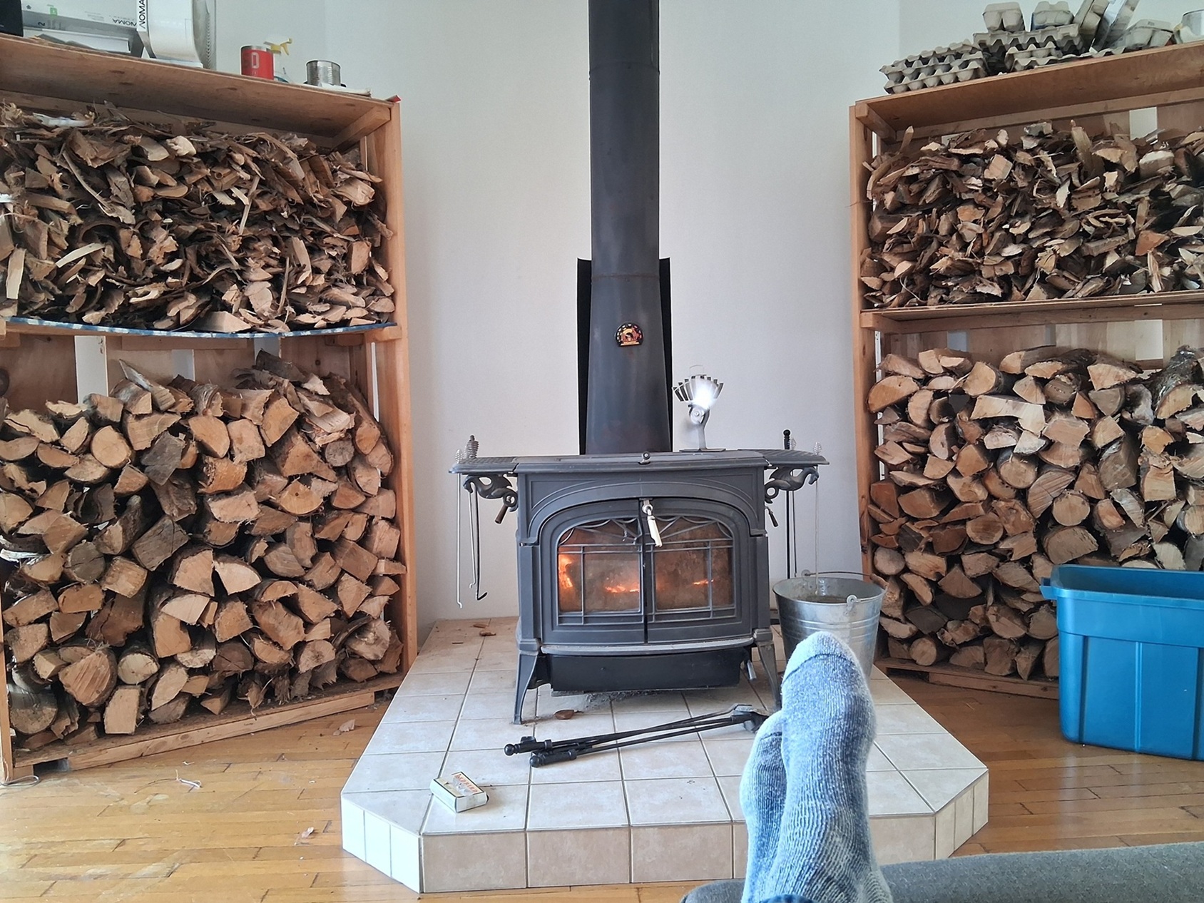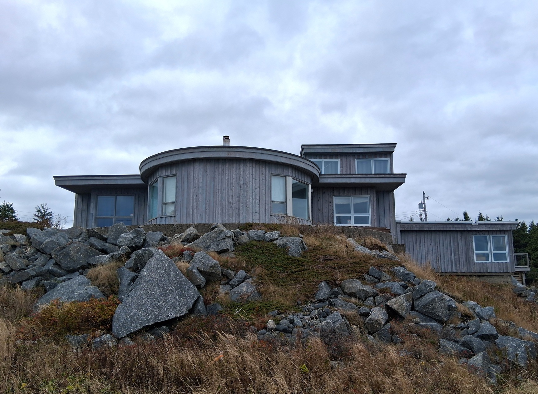 Karl’s house in Duncans Cove is about 20 minutes from Halifax and adjoins a Provincial Nature Reserve. Fox, bobcat, lynx, and deer are all native to the area and will occasionally cross the lawn. In the winter months he has the wood stove to supplement electric heat, which makes for a cozy living room. [All photos Max Vollmer, Click on any image to enlarge]