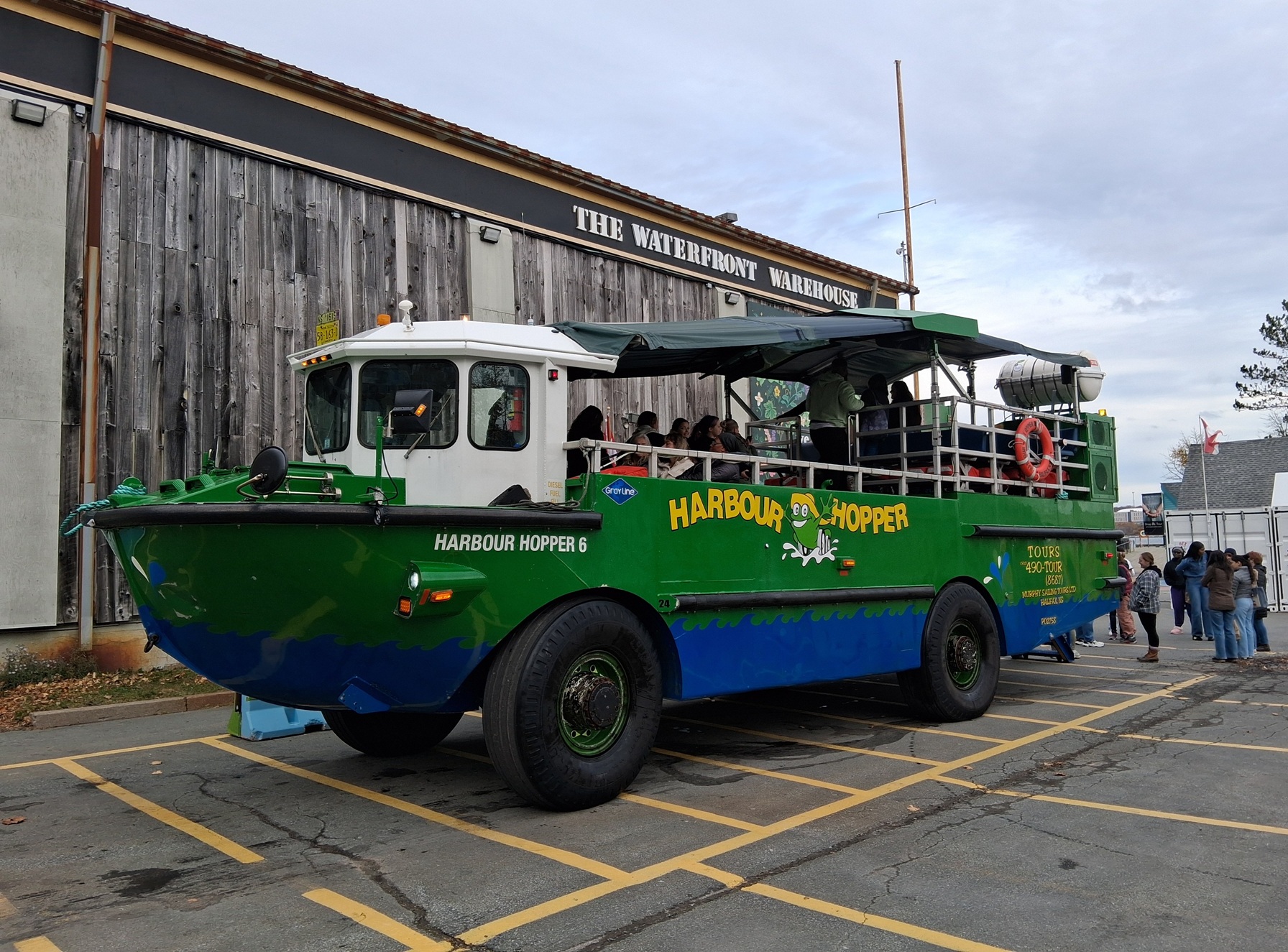 Karl and I rode the “Harbor Hopper,” a converted WW II amphibious vehicle that took us sightseeing around downtown Halifax and then, being amphibious, drove into the harbor so we could see the city from the water.