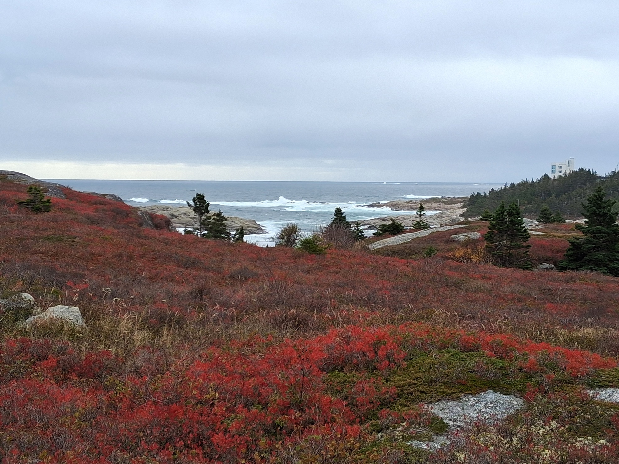 I hiked across the reserve to the lighthouse in 50 degree weather and then followed the rocks along the shoreline back to the house. Waves were modest today, October 30, but the effects of hurricane Melissa will bring heavy rain, strong winds, and high surf over the next two days, with the peak of the storm expected on Friday.