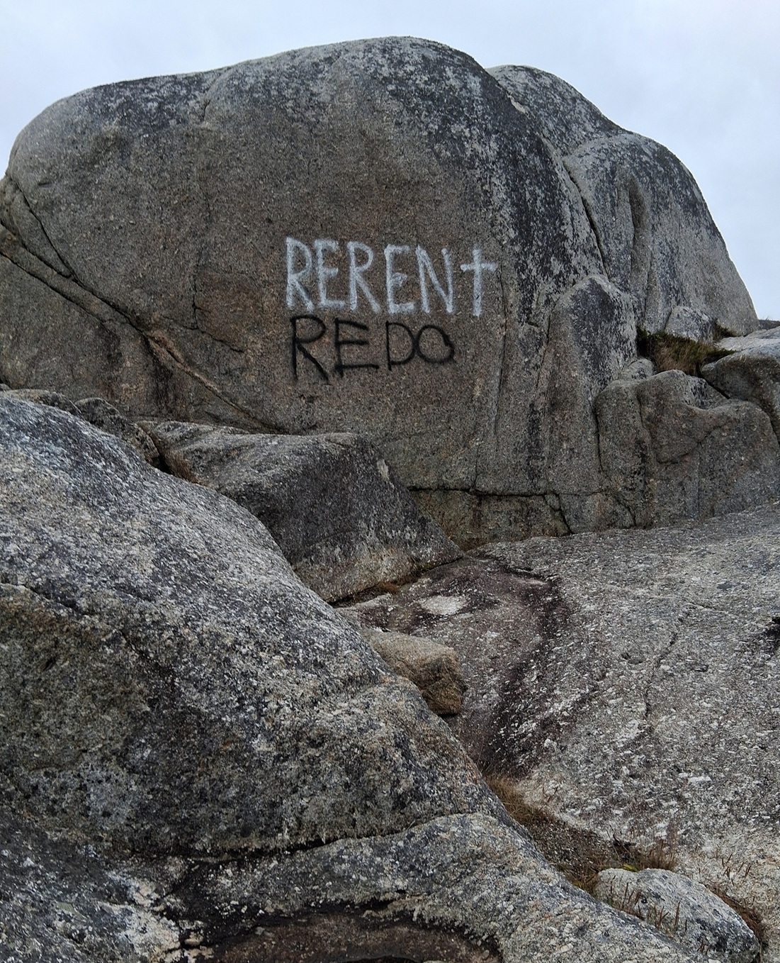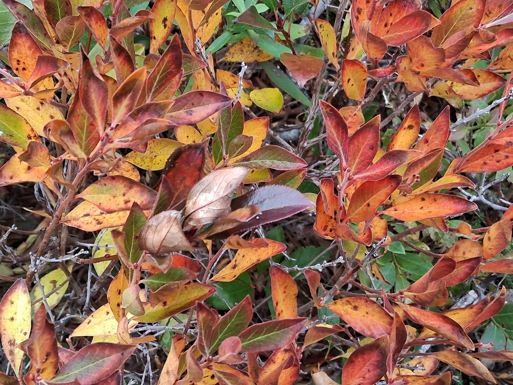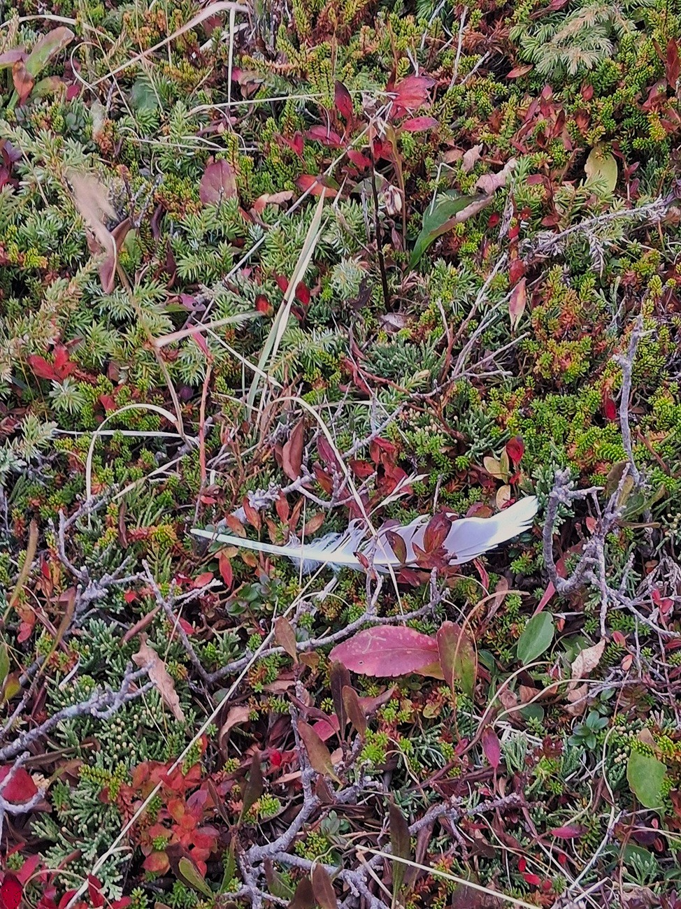 Granite boulders.Breaking waves down below the house. This is where the harbor meets the Atlantic Ocean.The message? Your guess is as good as mine.Low to the ground Fall color.Subtle leaf colors at shoe top level.Gull feather.