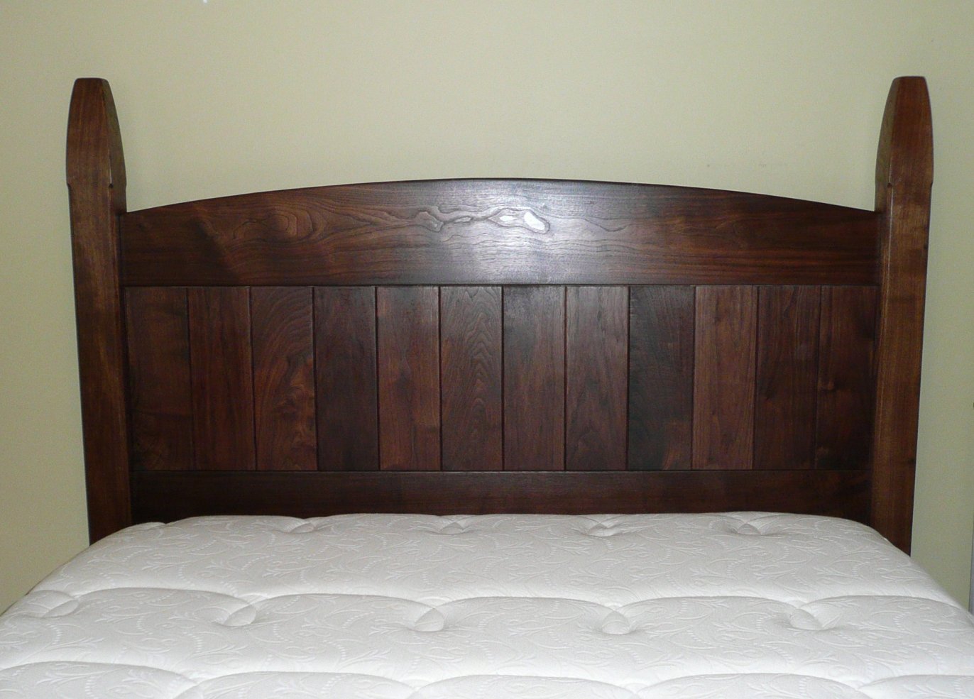 Queen size black walnut bed frame.Headboard with tongue and groove paneling.