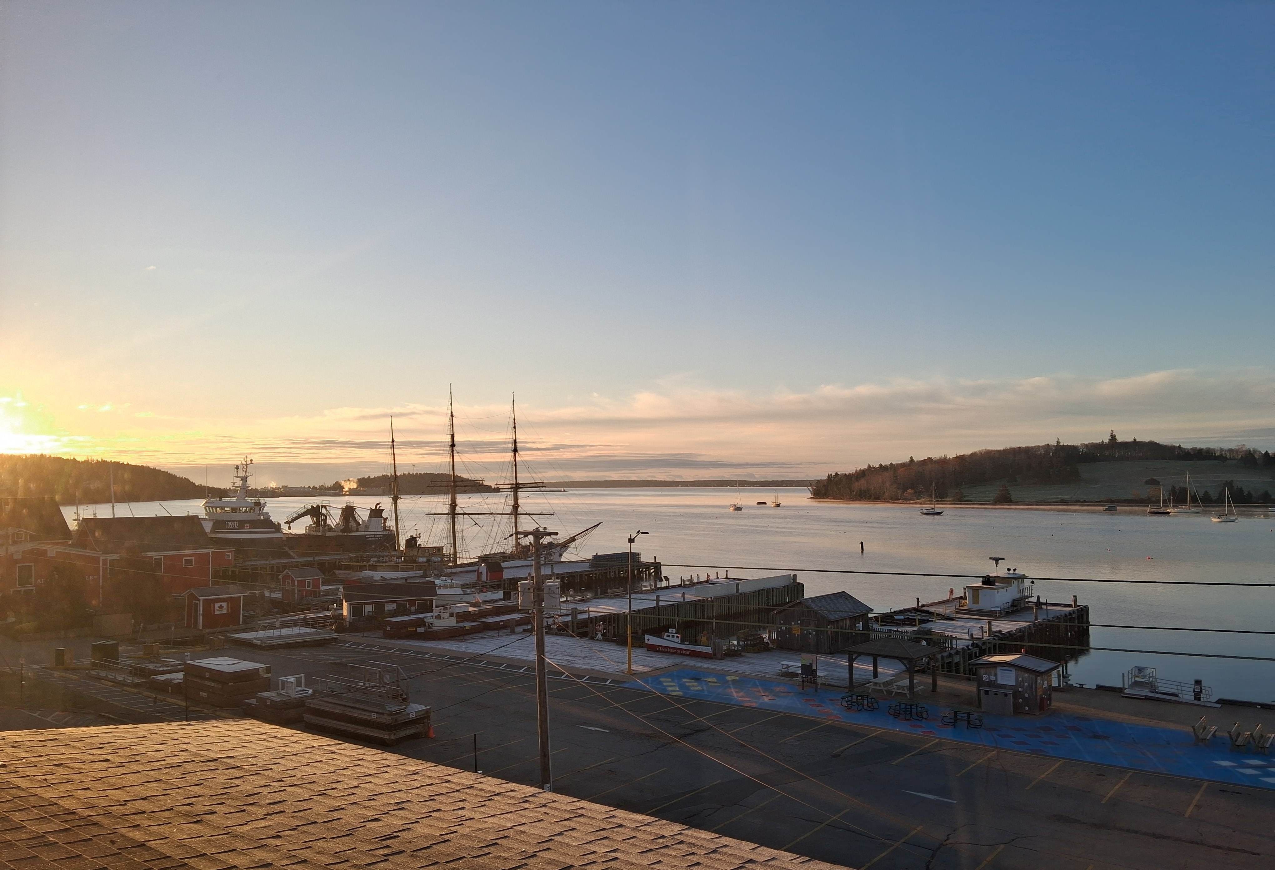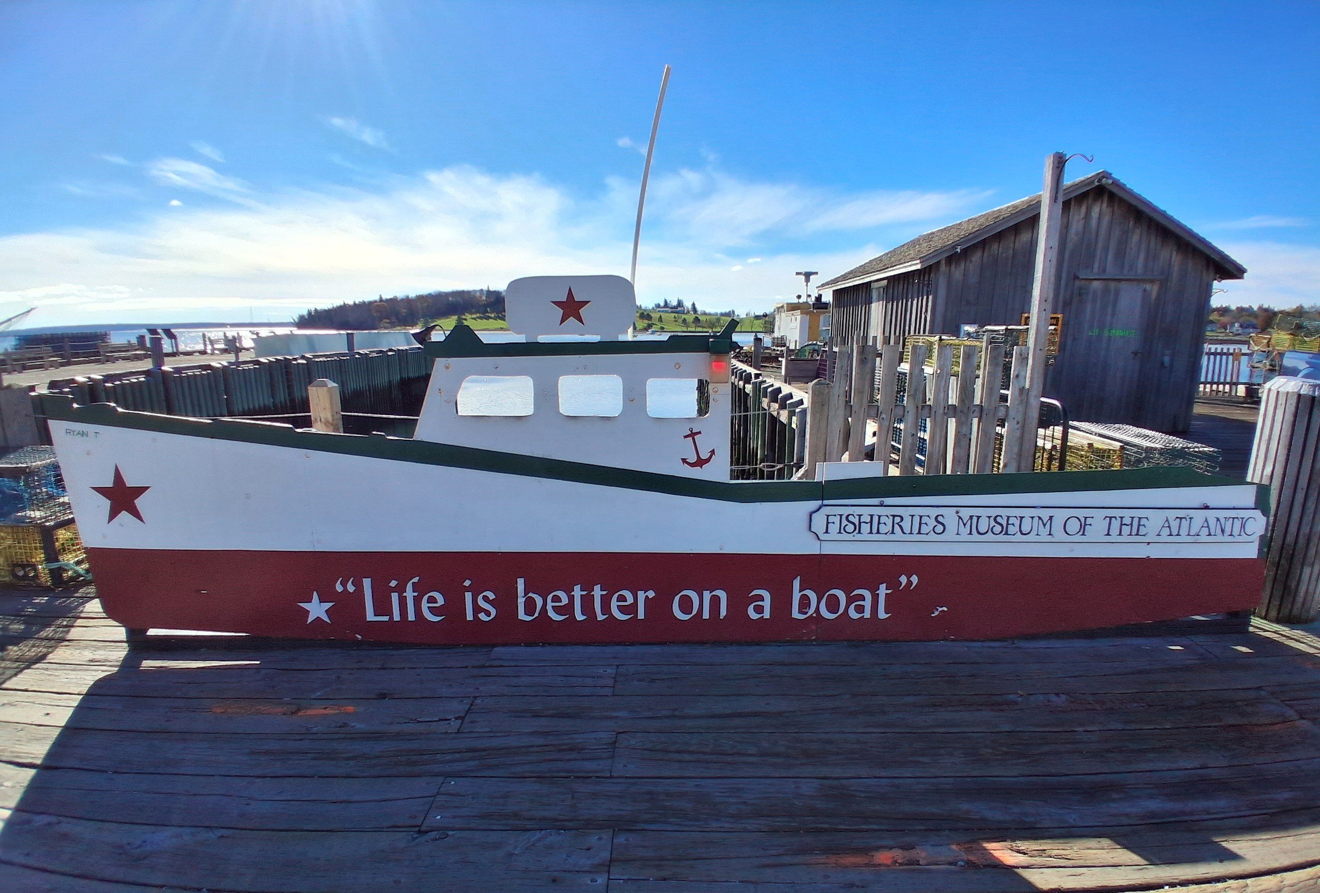 Sunrise over Lunenberg Harbor from my room at the Dockside Hotel.Lunenberg lodges and restaurants on the waterfront.Lunenberg waterfront.Harbor and the Atlantic Fisheries Museum (on right). The historic Cape Sable side trawler moored (center}.The Atlantic Fisheries Museum. Bluenose II moored on the left.Power and sail exist side by side in this working port.Steel hull 3-master.Lobster traps on the dock..Life is better on a boat. Is it?