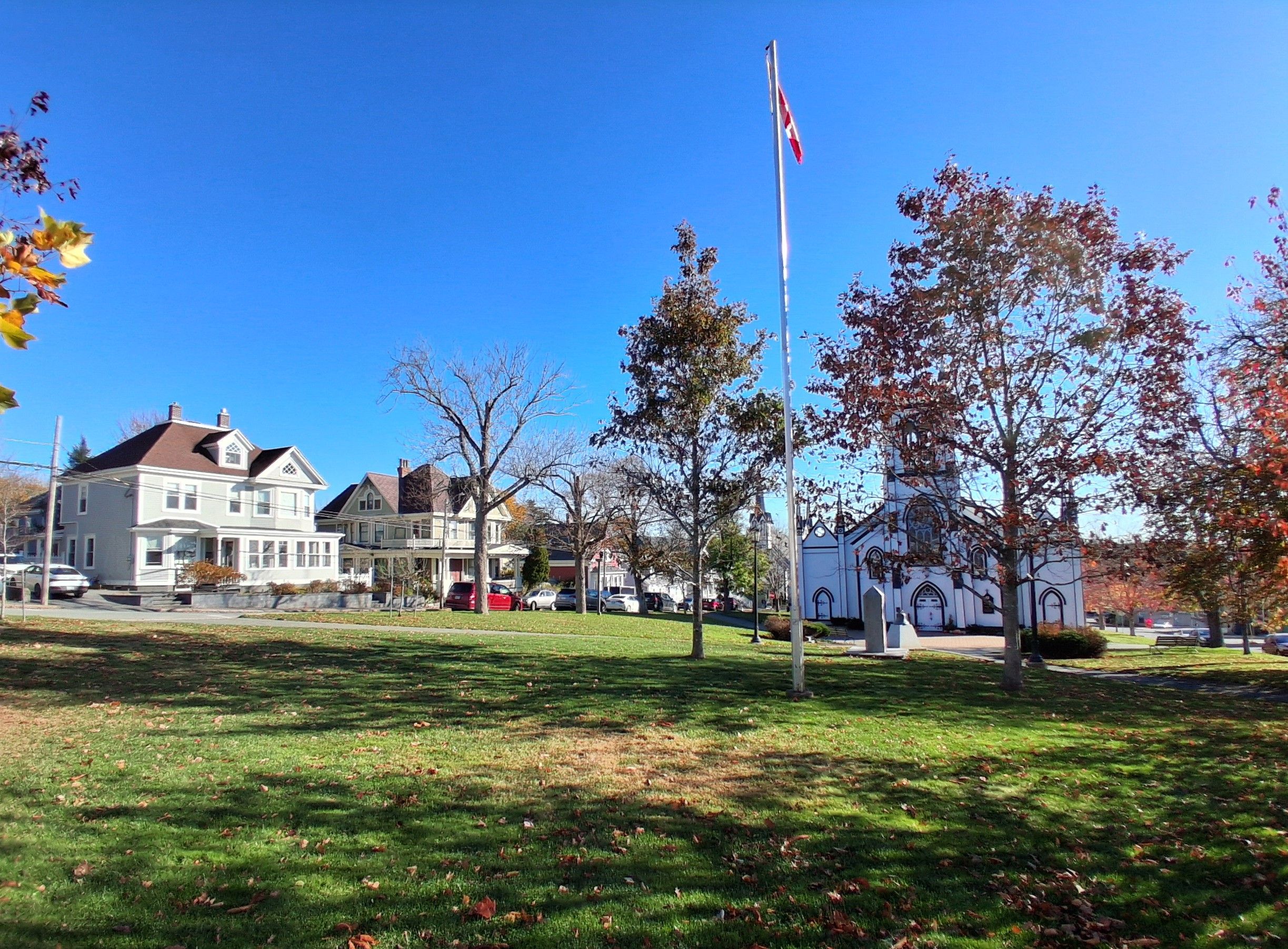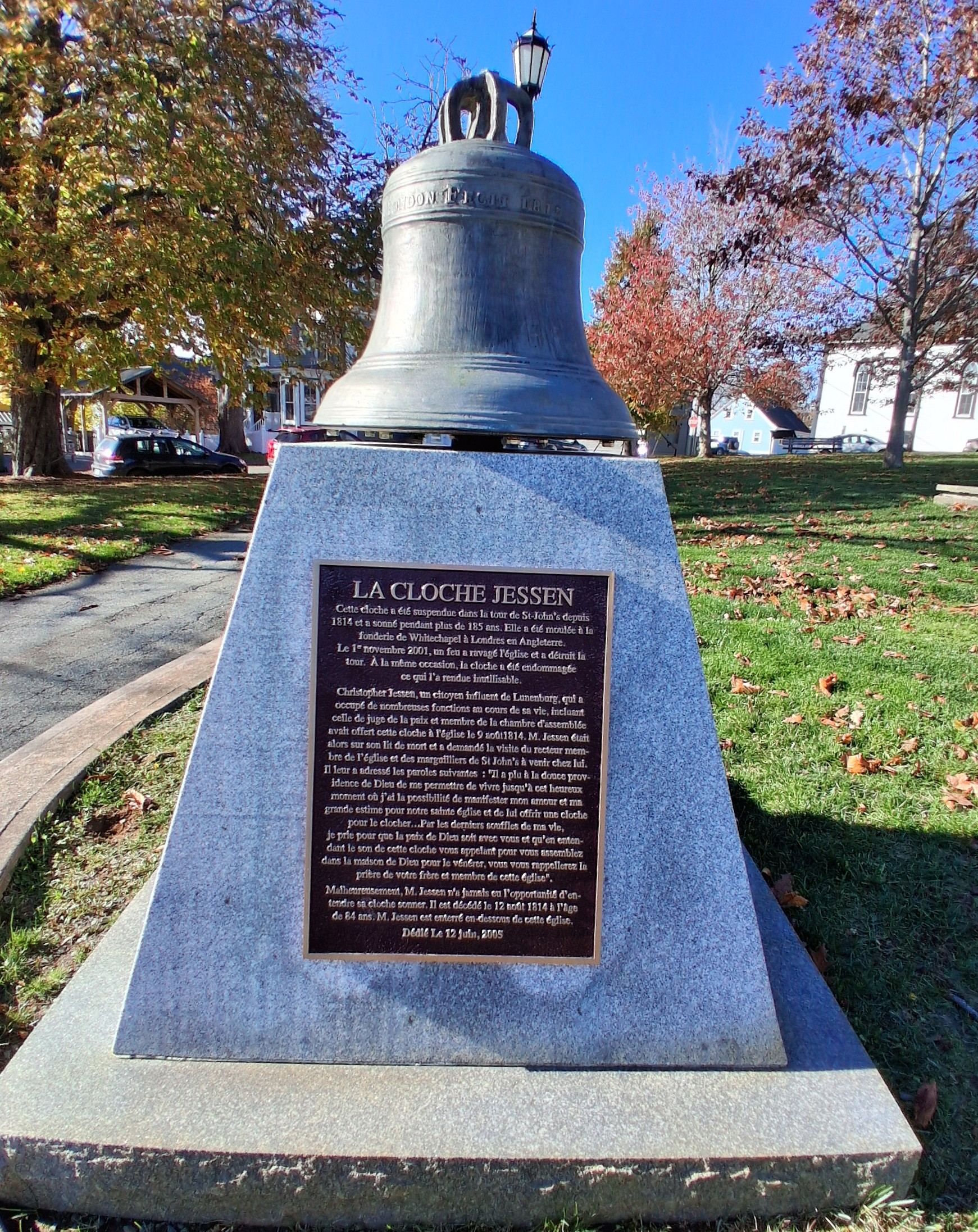 Steeper than it looks!Bright colors prevail.Entry doors receive a lot of attention.Hilltop home built in the 1700’s with two interior chimneys serving four fireplaces on the 1st and 2nd floors for heating.From the streets on the hillside, you look down to the water.Fine old homes dating from the earliest years built for ship’s captains and Lunenberg’s prosperous families.St. John’s Anglican Church of Canada.Founded in 1953, built within the first quarter century of Lunenberg’s settlement.The LaCloche Jessen bell in front of St. John’s.A reminder that the town has been home to shipbuilding and fishing for going on four centuries.